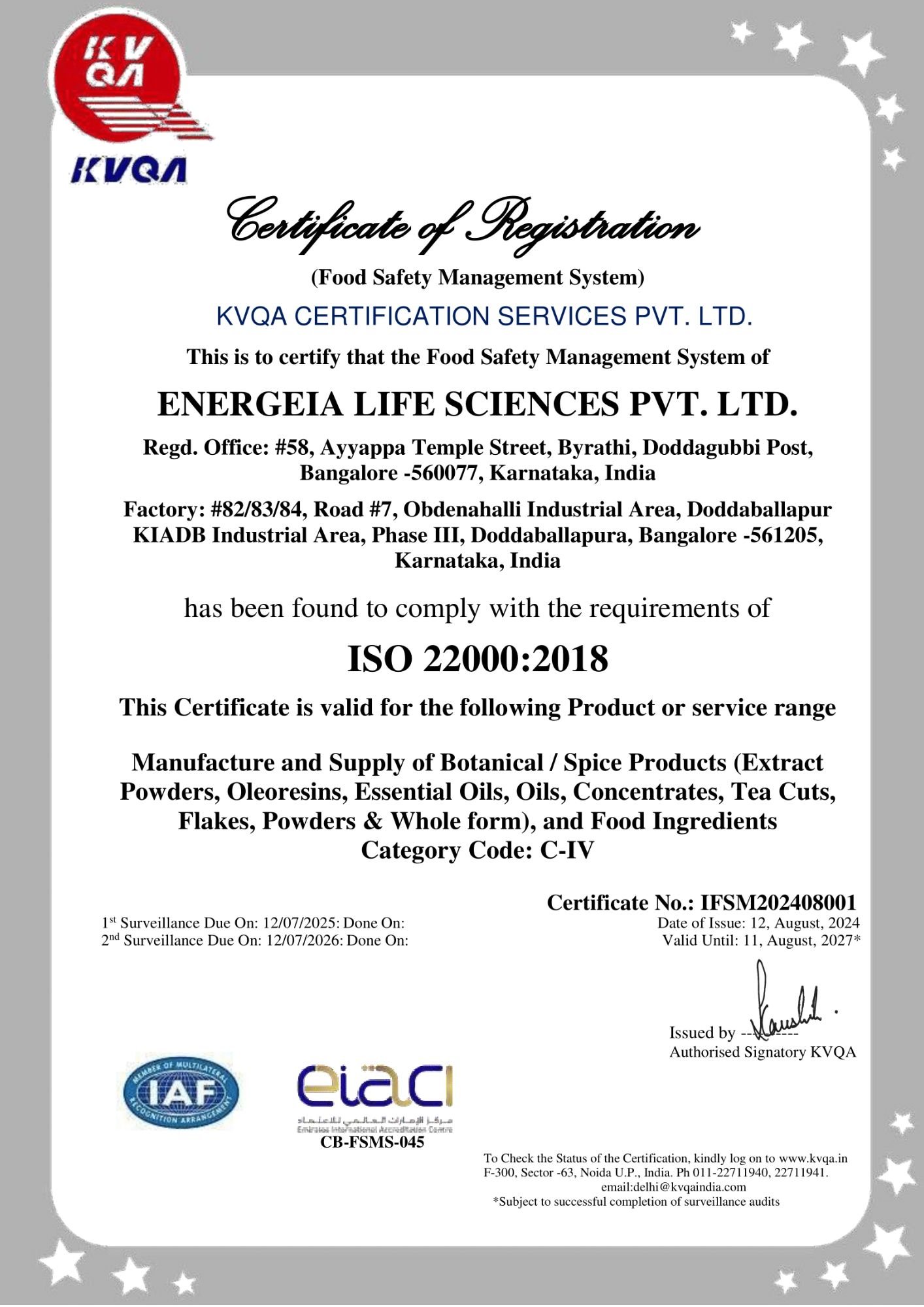Energeia Life sciences Pvt. Ltd. was established in the year 2010 at Bangalore- India with its incomparable technical team having a greater vision & mission producing and supplying optimum quality Natural ingredients (Herbal/Botanical/Spice products, Nutraceuticals and Phytochemicals) available to every individual around the world at the most affordable price for healthy living naturally.
